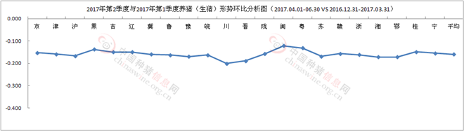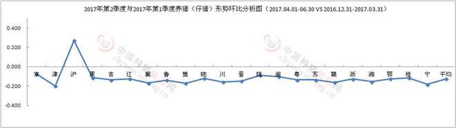 图4 2017年第2季度与第1季度养猪(生猪)形势环比分析图(2017.04.01-06.30 VS 2016.12.31-2017.03.31)