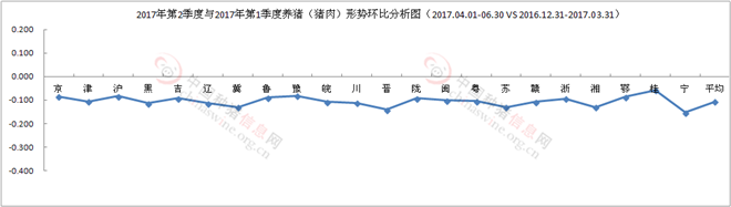图6 2017年第2季度与第1季度养猪(猪肉)形势环比分析图(2017.04.01-06.30 VS 2016.12.31-2017.03.31)