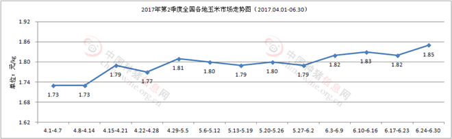 图7 2017年第2 季度全国各地玉米市场走势图(2017.04.01-06.30)