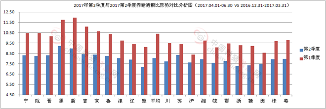 图10 2017年第2季度与第1季度养猪(豆粕)形势环比分析图(2017.04.01-06.30 VS 2016.12.31-2017.03.31)