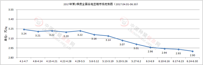 图9 2017年第2季度全国各地豆粕市场走势图(2017.04.01-06.30)