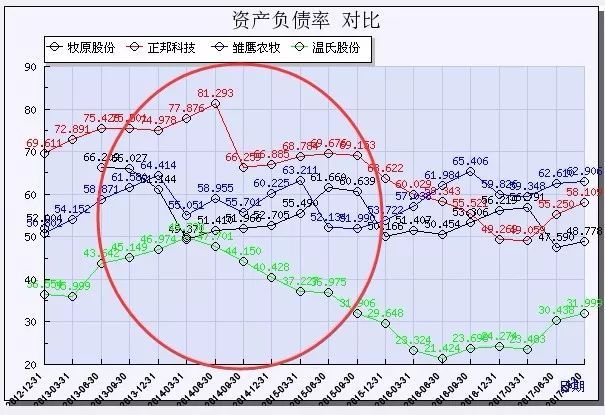 更要看到,在猪价低迷的时候,几大企业的资产负债的程度,而这背后,就是资金的风险。