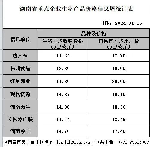 图表:2024年1月16日中国外三元+内三元+土杂猪收购均价统计表(单位:元/公斤):