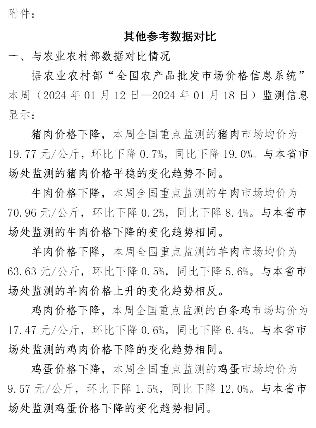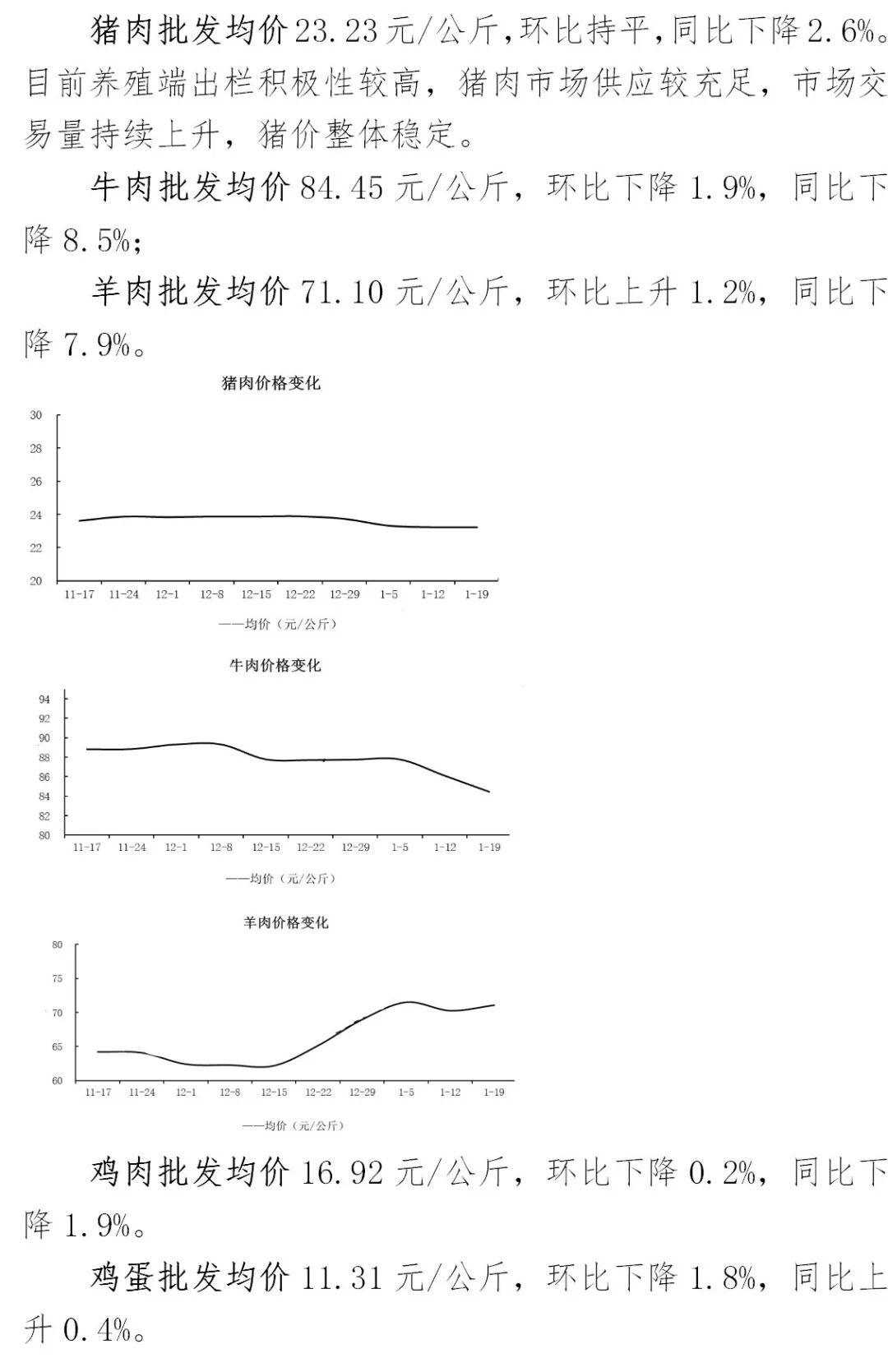 主要畜禽产品批发市场价格总体下降,其中,羊肉市场价格上升