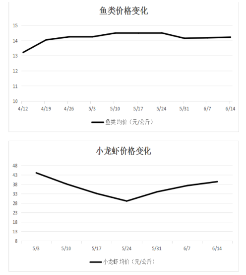 二、水产品批发市场价格总体上升本周鱼类批发均价 14.22 元/公斤,环比上升0.3%,同比上升 18.0%。其中,鲢鱼、鲫鱼均价环比上升5.9%、0.3%,鲤鱼、草鱼均价环比持平。