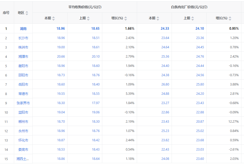 2024年7月16日,中国主流市场出栏外三元、内三元及土杂商品大猪加权日均价上涨,全国生猪出栏加权日均价18.76元每公斤,相比昨天上涨0.24%。1. 主流市场外三元大猪全国销售均价18.88元每公斤,相比昨天上涨0.27%;2. 主流市场内三元大猪全国销售均价18.48每公斤,相比昨天上涨0.11%;3. 主流市场土杂大猪全国销售均价18.11元每公斤,相比昨天上涨0.28%。图表:2024年7月16日中国外三元+内三元+土杂猪收购均价统计表(单位:元/公斤):备注:数据来源于慧通数据研究部,红色表示涨,绿色表示跌。(绿色代表一周价格最低点、红色代表一周价格最高点)今日猪价继续偏强上涨。市场看涨情绪不减,养殖端出栏节奏放缓,加上二育补栏积极性升温,局地猪源供应偏紧,屠企采购难度有增,支撑猪价继续上涨。不过高温天气,终端消费疲软,批发市场白条走货一般,叠加湿热天气,猪场疫病风险较高,市场多有落袋为安心态,猪价涨势受限。总体上预计7月下旬出栏大猪价格总体将继续偏强震荡走势为主,8月-12月份期间猪价总体逐月上涨的几率依旧偏高。我们同时继续坚持认为,如果7-8月期间猪价过快过高上涨,则9-1月份期间被整个养殖端寄予厚望的猪价涨势将大打折扣甚至不排除不涨反跌的可能。因为出栏大猪供应紧张并不代表猪肉供应紧张,过于高估及夸大猪源猪供应紧张存在风险,整个养殖端对后市预期的高度一致性本身也意味着极大风险。
